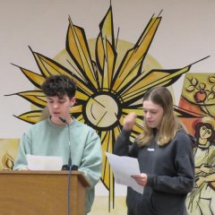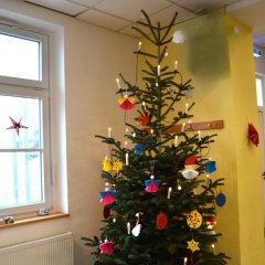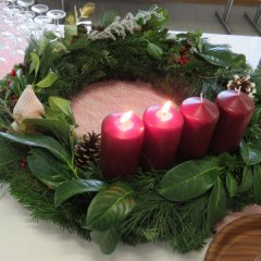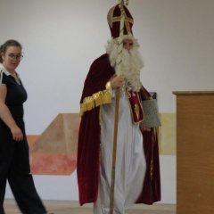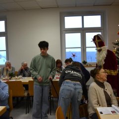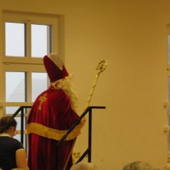 Zur besinnlichen Atmosphäre trug auch die Weihnachtsgeschichte „Lichtsein“ bei, die von Helen, Alina und Silas Schmitt einfühlsam vorgetragen wurde und den Gedanken und die Bedeutung des Lichtes in dieser vorweihnachtlichen Zeit auf besondere Weise unterstrich. Auch der hl. Nikolaus besuchte die Veranstaltung und übergab Jedem ein kleines Präsent in Form einer liebevoll gestalteten Kerze.